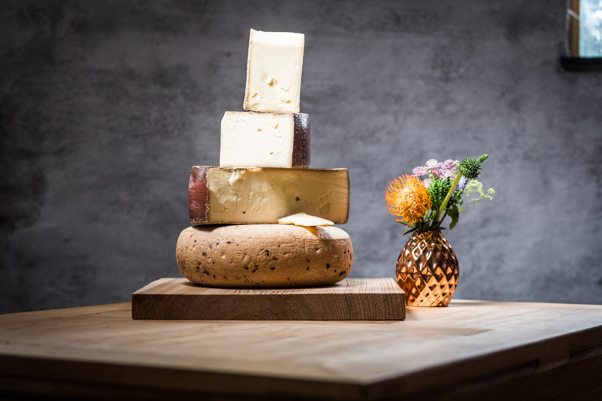In der Käsetheke findet man- Eigenkreationen aus Rohmilch, sowie ausgewählte Käsesorten von Kuh, Schaf, Ziege und Büffel der Affineure Degust und Tölzer Kaskaden.