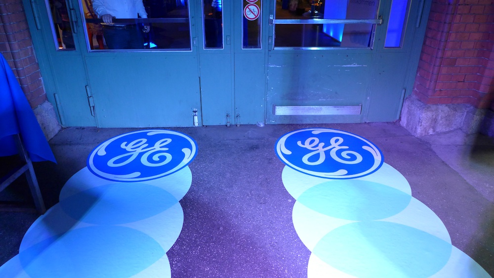 GE und der bdew haben am 10. März eine Veranstaltung ganz in blauer Dekoration gefeiert. Die Farbe Blau repräsentiert die Logofarbe von GE.