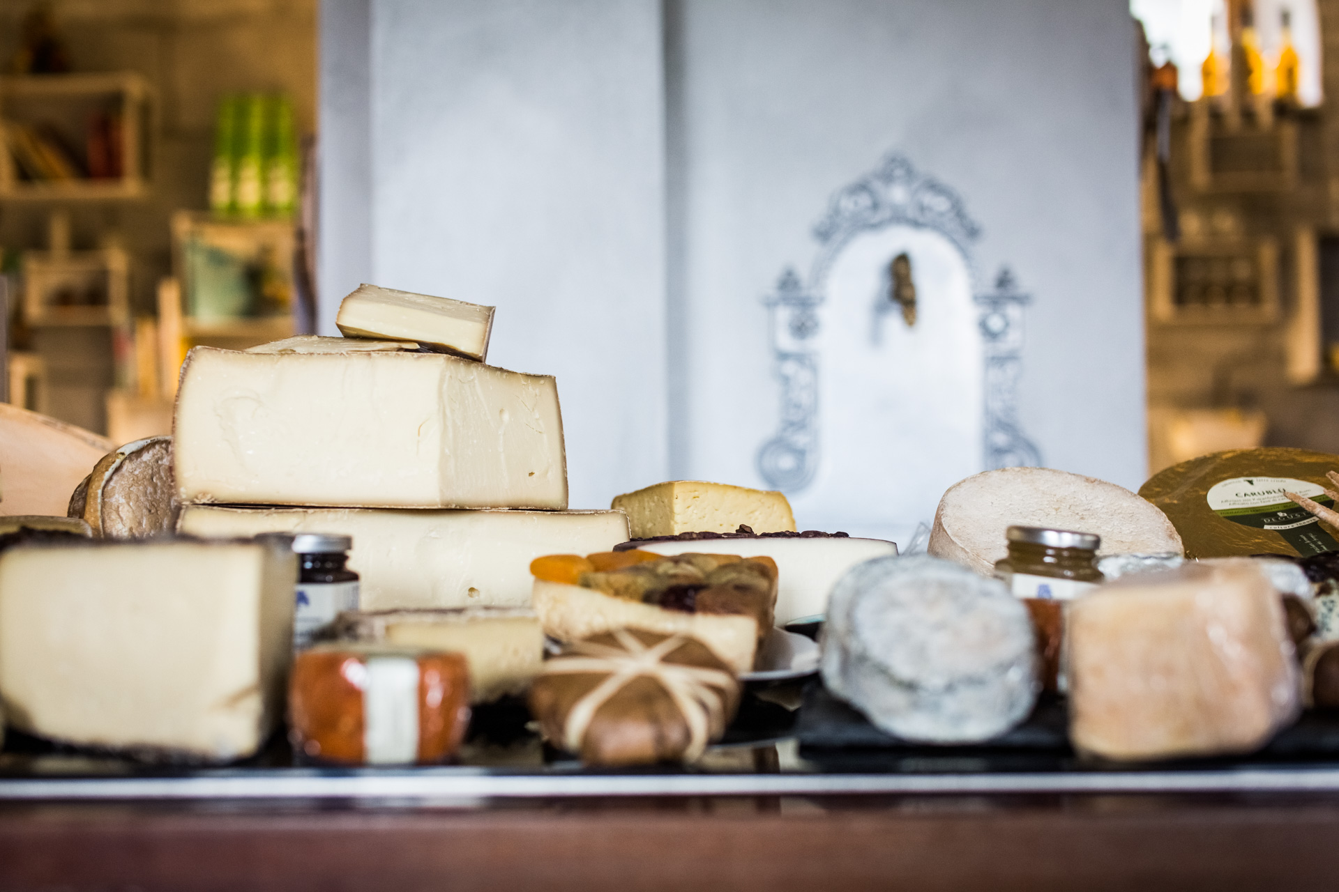 In der Käsetheke findet man- Eigenkreationen aus Rohmilch, sowie ausgewählte Käsesorten von Kuh, Schaf, Ziege und Büffel der Affineure Degust und Tölzer Kaskaden.